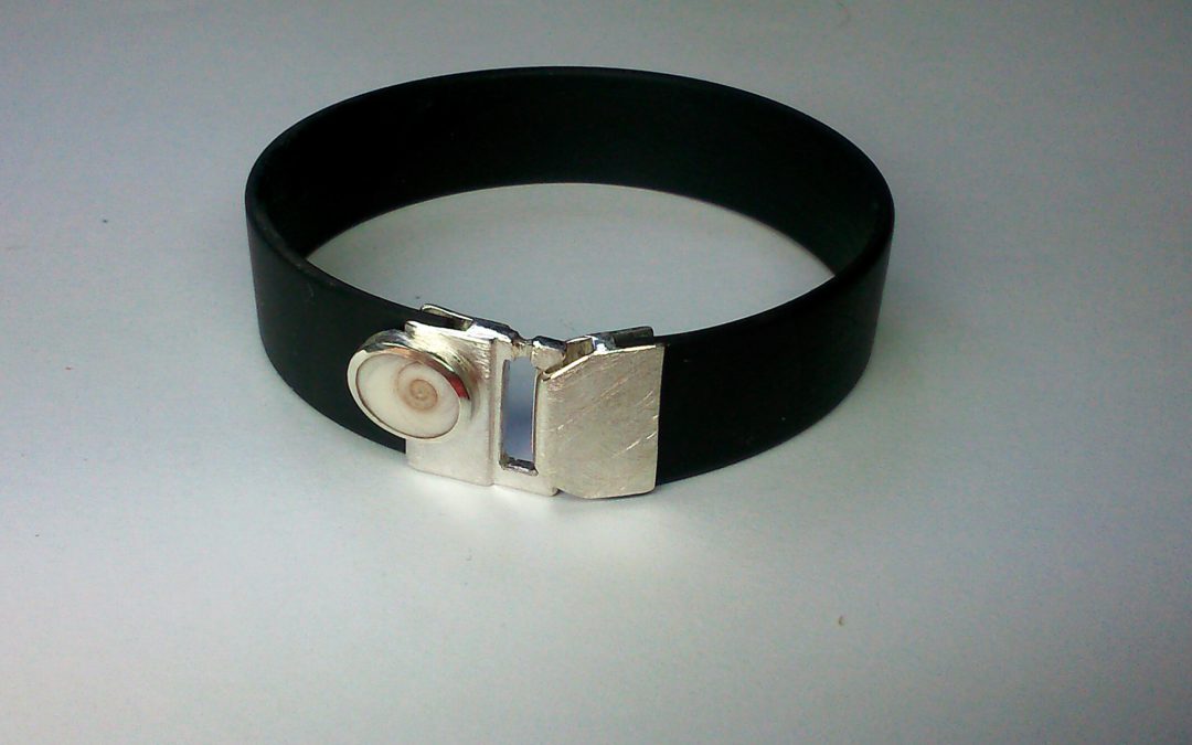 Armspange aus Kautschuk und 925/- Silber mit Muschel